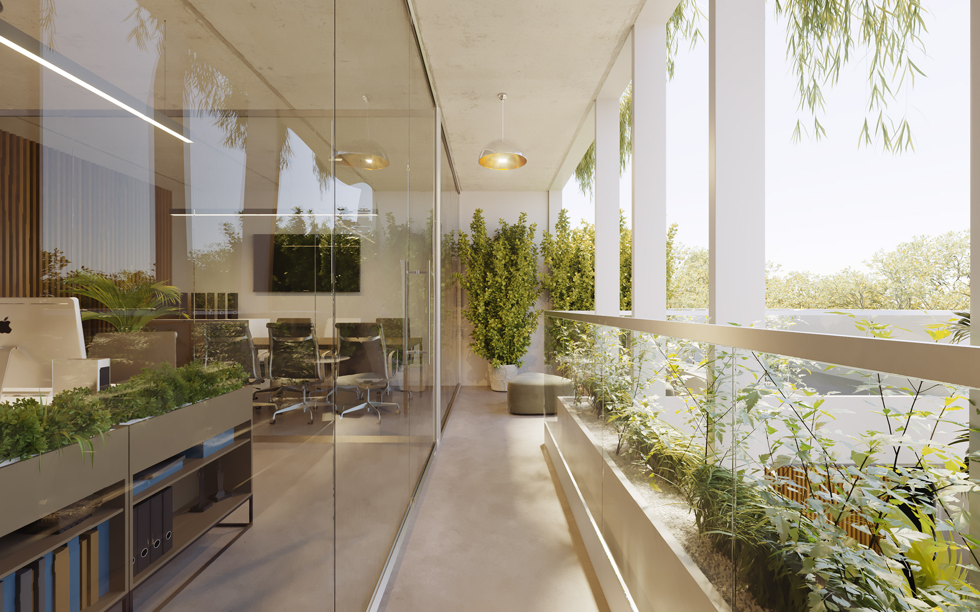 El proyecto utiliza una estrategia de implantación para desvanecer los límites entre la arquitectura y la ciudad, con un atrio de acceso simétrico que se replique en el patio trasero. Además, se han implementado medidas de amortiguación ambiental, como espacios semicubiertos en las áreas de oficinas y reuniones, ventilación cruzada constante y un hall de triple altura como intercambiador de calor. En conjunto, estas medidas forman un dispositivo ambiental para todo el edificio.